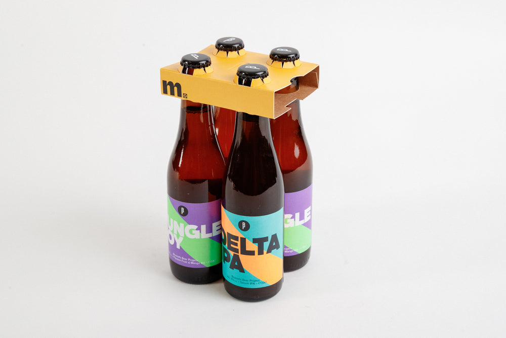 Deze worden geproduceerd voor 4 flesjes of 6 flesjes. Je kan deze personaliseren om je eigen bier te promoten of andere promotionele doeleinden.