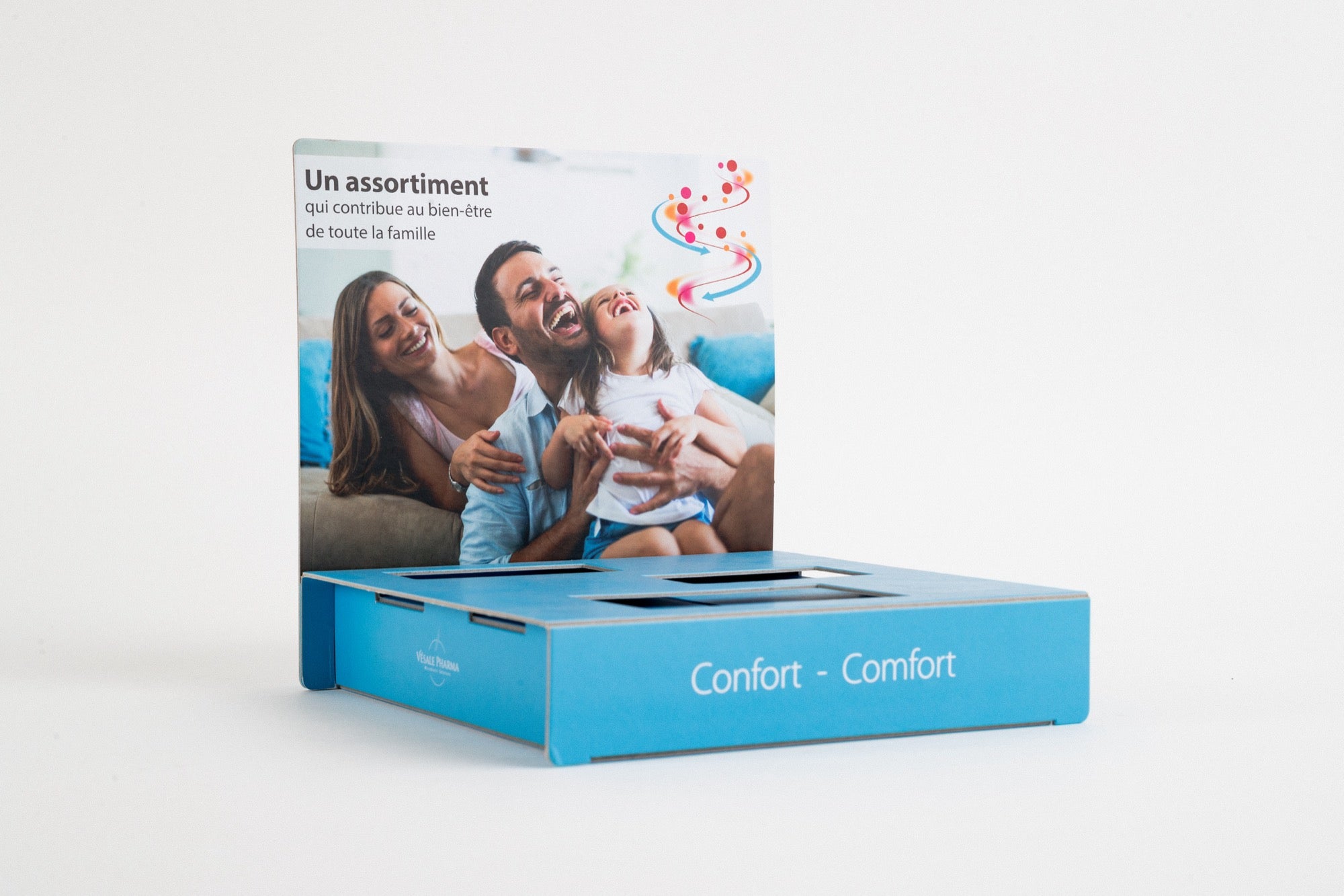 Een toonbankdisplay in karton is een compacte, kartonnen display die op toonbanken wordt geplaatst om producten of promotiemateriaal aantrekkelijk te presenteren. Het is licht, duurzaam, personaliseerbaar, en eenvoudig op te zetten, ideaal voor het promoten van kleinere producten en het stimuleren van impulsaankopen.